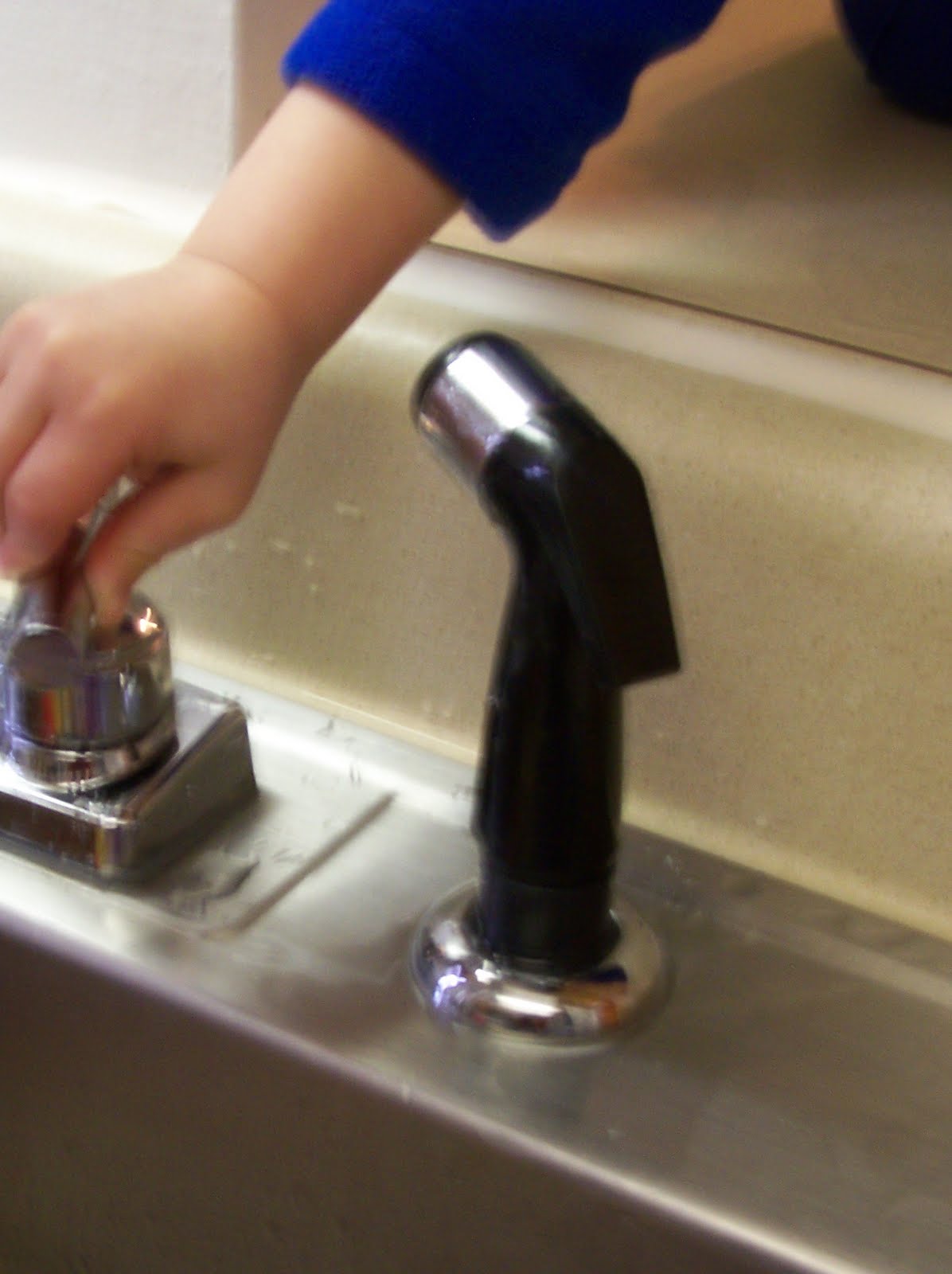 He seems to patiently wait until I am busy with something (like moving laundry loads around) and he races upstairs to turn on the water and fill and dump whatever container he can find nearby. He is able to make a HUGE mess in seconds. Luckily he has yet to discover this dandy little gadget-